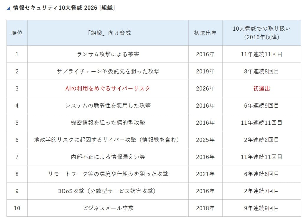 画像出典:情報セキュリティ10大脅威2026