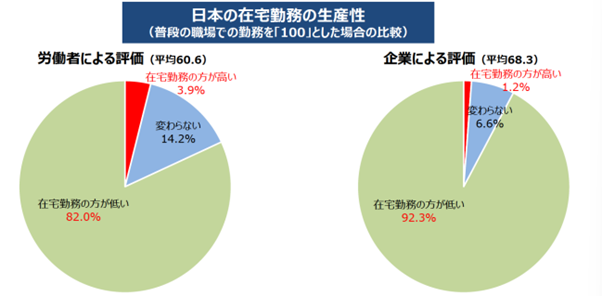 一方、「在宅勤務の方が生産性が高い」と回答したのは、労働者で3.9%、企業で1.2%に留まりました。